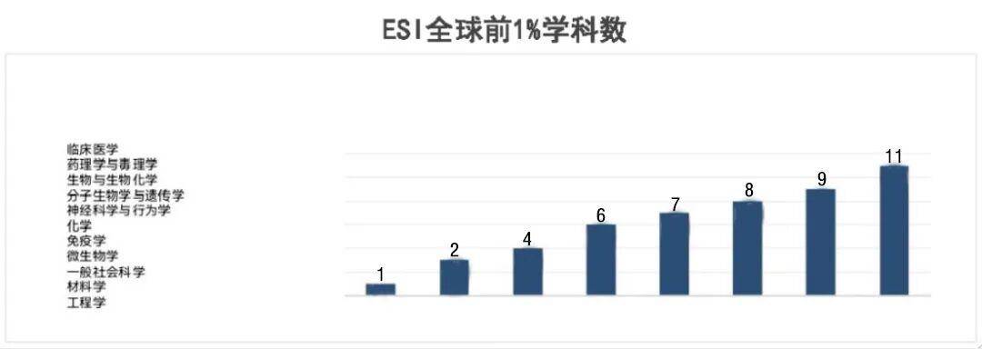 科进入ESI环球排名前1%校(院)资料科学、工程学学。目前截至,前1%学科数目达11个校(院)进入ESI环球,入环球前0.67‰此中临床医学学科进。
